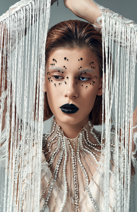 "Мы с командой сошлись на том, что представляем будущее во все более цифровом мире, где и наша внешность будет меняться в виртуальной реальности. Поэтому на нашей модели супертехнологичные линзы, которые некоторые элементы изменяют, а некоторые добавляют".