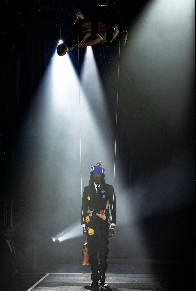 Огромная рука, парящая над моделями, в буквальном смысле вела своих марионеток. Несмотря на гротескность луков, они вполне органично впишутся в повседневность, разбавляя джинсово-черный кэжуал.
