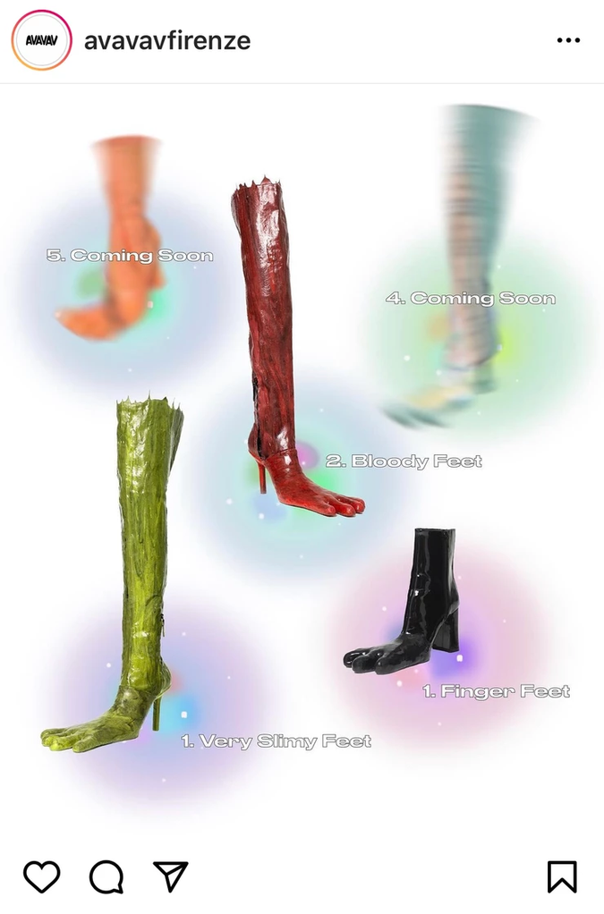 Итальянский бренд AVAVAV создал сапоги-монстры из отходов других модных домов.Обувь выполнена в виде гигантской ступни, дизайн которой разработал модельер Beate Karlsson.