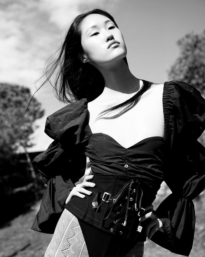 Body: Wolford Belt: Alaïa Tights: Gucci Boots: Alexander McQueen